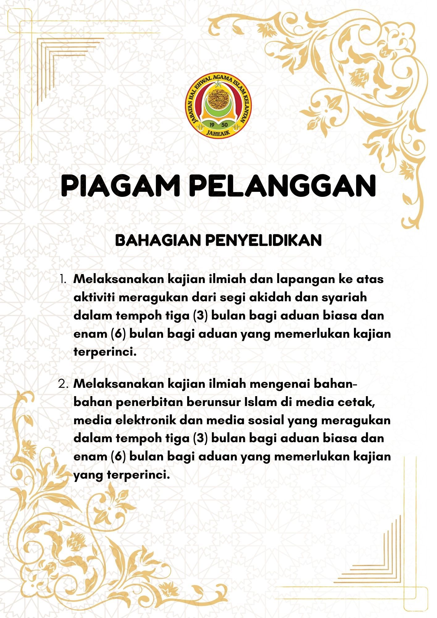 Piagam Pelanggan Bahagian Penyelidikan